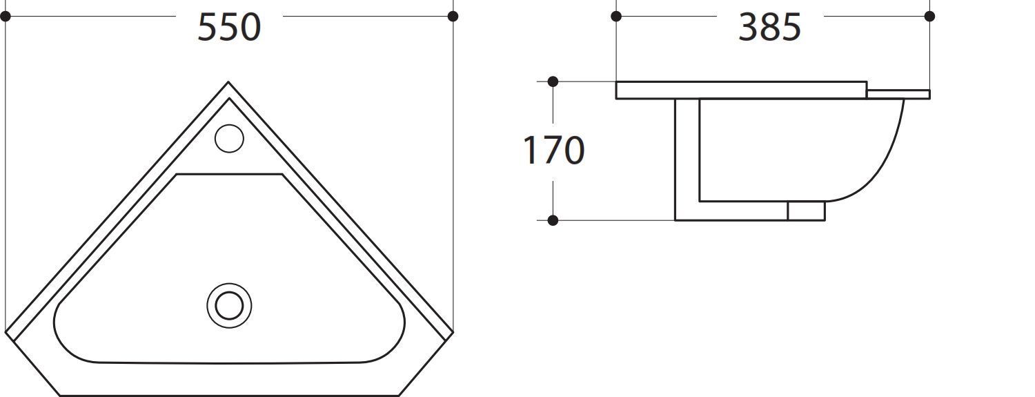 Раковина керамичеcкая угловая с отверстием под смеситель и переливом