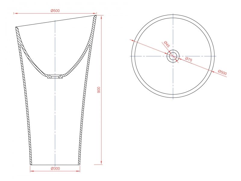 Напольная раковина Montebianco Pisa Cono 11237 круглой формы отлично подойдет для ванных комнат с современным дизайном.