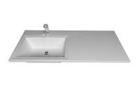 Раковина для ванной комнаты для установки над стиральной машинкой. Верхний слой гелькоута формирует декоративно защитное покрытие. Раковина крепится на кронштейны. Может эксплуатироваться как самостоятельное изделие, так и со встроенной мебелью. Чаша устанавливается на тумбу или кронштейн, столешница умывальника - на поддерживающий кронштейн. Для крепления раковины на кронштейнах (тумбе) рекомендуется использовать силиконовый либо полеуретановый герметик.