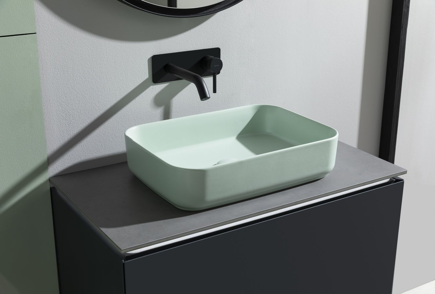 Накладная раковина для ванной комнаты Allen Brau Fantasy Quad в цвете «Мятный» шириной 50 см изготовлена из высококачественной керамики, что обеспечивает прочность, долговечность и элегантный внешний вид. Ее прямоугольная форма создает современный и стильный облик, добавляя утонченности ванной комнате. Раковина не имеет отверстия для перелива и также не имеет готового отверстия под смеситель, что придает ей минималистичный и сдержанный вид. Эта накладная раковина идеально подходит для тех, кто ценит современный дизайн и функциональность. Ее простота и элегантность делают ее универсальным выбором, который легко впишется в любой интерьер ванной комнаты, придавая ему изысканность и стиль.