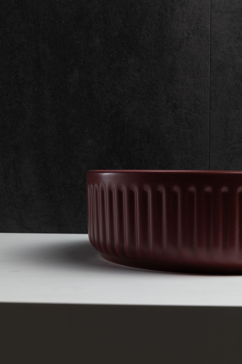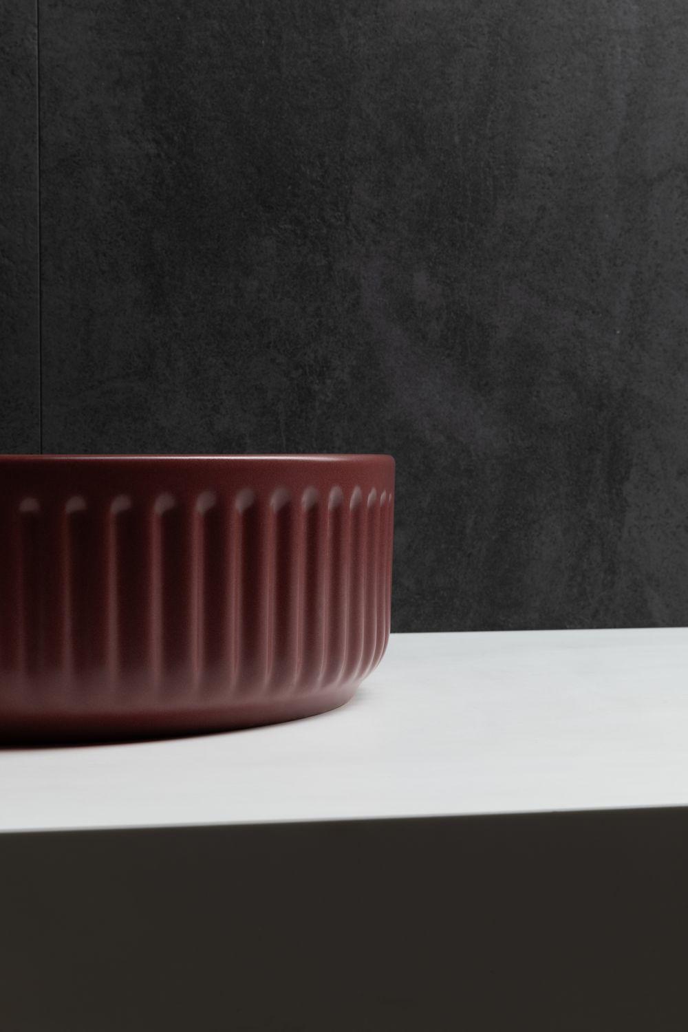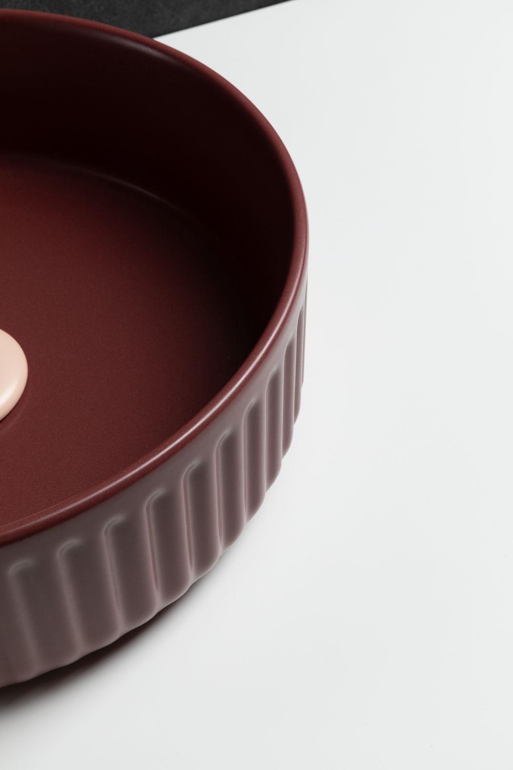 Накладная раковина для ванной комнаты Allen Brau Fantasy Line в цвете «Бордо» шириной 36 см изготовлена из качественной и прочной керамики, что обеспечивает надежность и устойчивость. Ее круглая форма придает интерьеру ванной комнаты изысканность и гармоничность. Раковина не имеет отверстия для перелива и отсутствует готовое отверстие под смеситель, что придает ей минималистичный и современный вид. Эта накладная раковина подойдет для тех, кто ценит простоту и элегантность. Ее универсальный дизайн легко впишется в различные стили интерьера ванной комнаты, придавая ему изысканность и стиль. Благодаря своей гармоничной форме и отсутствию лишних деталей, эта раковина будет служить не только функциональным, но и стильным элементом вашей ванной комнаты.