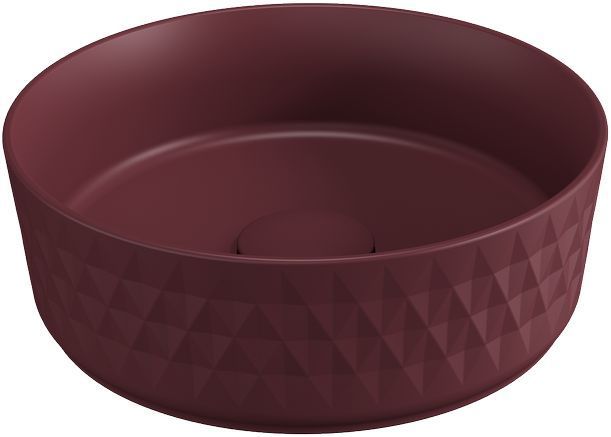 Накладная раковина для ванной комнаты Allen Brau Fantasy Romb в цвете «Бордо» шириной 36 см изготовлена из качественной и прочной керамики, что обеспечивает надежность и устойчивость. Ее круглая форма придает интерьеру ванной комнаты изысканность и гармоничность. Раковина не имеет отверстия для перелива и отсутствует готовое отверстие под смеситель, что придает ей минималистичный и современный вид. Эта накладная раковина подойдет для тех, кто ценит простоту и элегантность. Ее универсальный дизайн легко впишется в различные стили интерьера ванной комнаты, придавая ему изысканность и стиль. Благодаря своей гармоничной форме и отсутствию лишних деталей, эта раковина будет служить не только функциональным, но и стильным элементом вашей ванной комнаты.