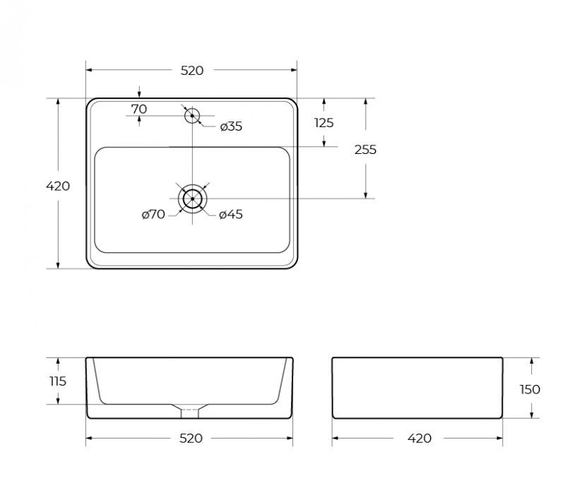 •Габаритные размеры раковины: 520х420х150 мм