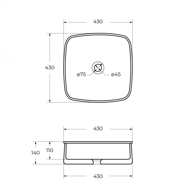 •Габаритные размеры раковины: 430х430х140 мм