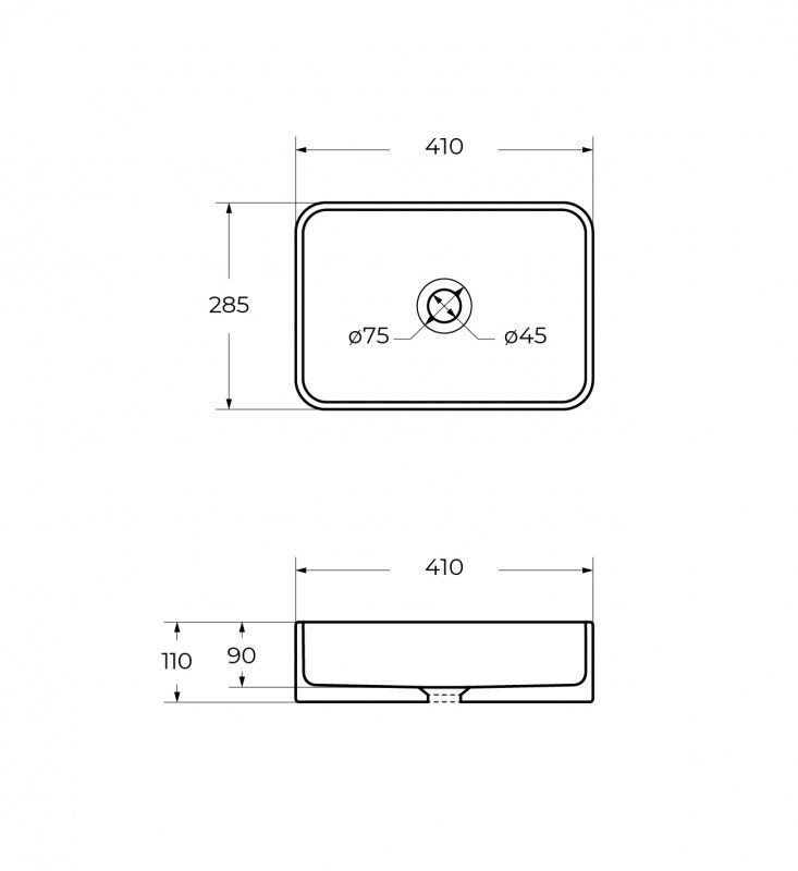 •Габаритные размеры раковины: 410х285х110 мм