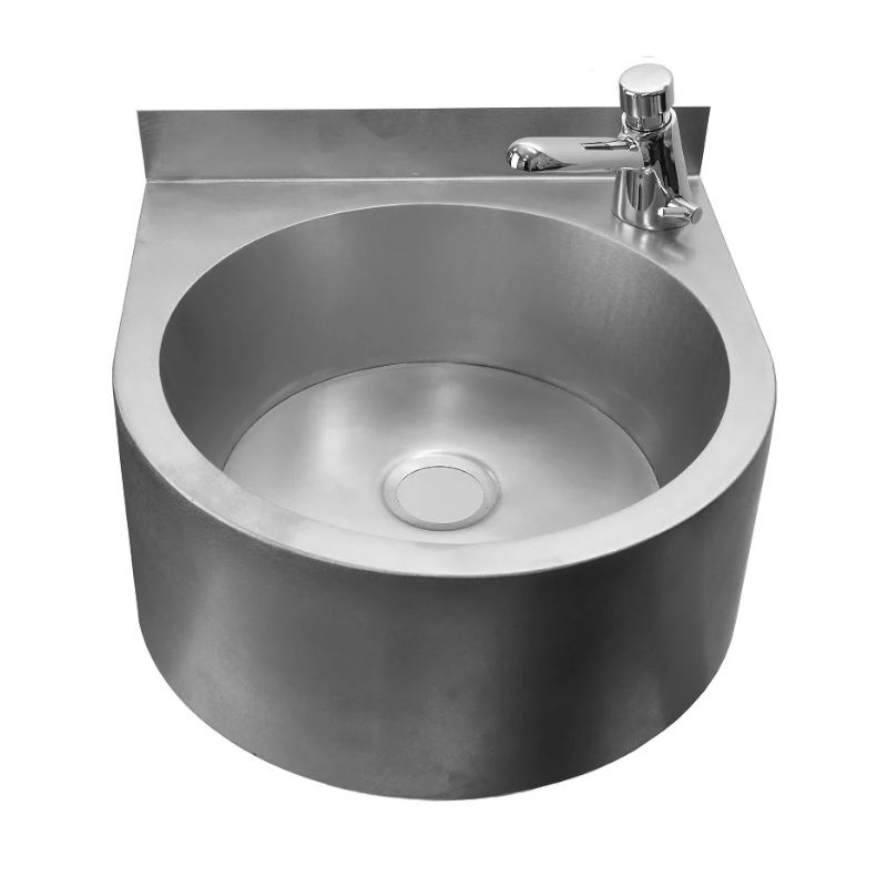 Раковина настенная полукруглая РН 004 (310) 1,2. Раковина из нержавеющей стали AISI 304. Поверхность раковины шлифованная, матовая. Дополнительно комплектуется пьедесталом. Толщина стали 1,2 мм.