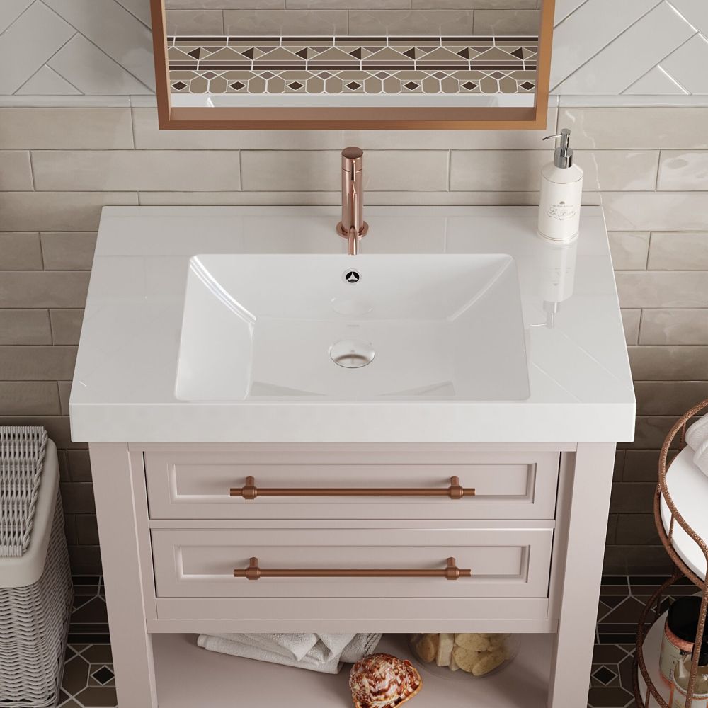 Врезная раковина Paola Amaretto 800 имеет современный, стильный и эргономичный дизайн. Данная мебельная раковина устанавливается на тумбу (со свесом или вровень). Раковина изготовлена из прочного износостойкого литьевого мрамора со специальным химически стойким защитным покрытием гелькоутом.