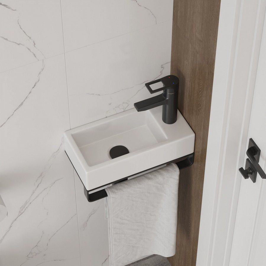 Удобная конструкция, которая позволяет быстро осуществить монтаж, умывальника. Встроенная полочка под смеситель добавляет функциональности, а отверстие для крана уже предусмотрено конструкцией.
