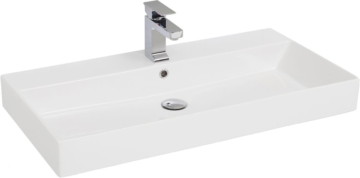 Полувстраиваемая керамическая раковина в белом исполнении 850х455х150 мм для тумбы Sanovit Slim Synergy. Минималистичная модель строгой прямоугольной формы, которая аккуратно ложится на тумбу, повторяя ее очертания. Умывальник имеет одно отверстие для установки смесителя и другое для вывода стоков. Конструкция не допускает разбрызгивание воды на бортики раковины или стекание на саму тумбочку, а также позволяет использовать чашу для замачивания белья. Благодаря своим компактным размерам раковина вместе с тумбой дополняют интерьеры разных ванных комнат по площади. Они не занимают лишнее место в малых пространствах и не создают дискомфорта при использовании на сравнительно большой площади.