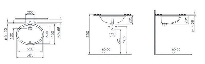 - Встраиваемая снизу модель овальной формы.