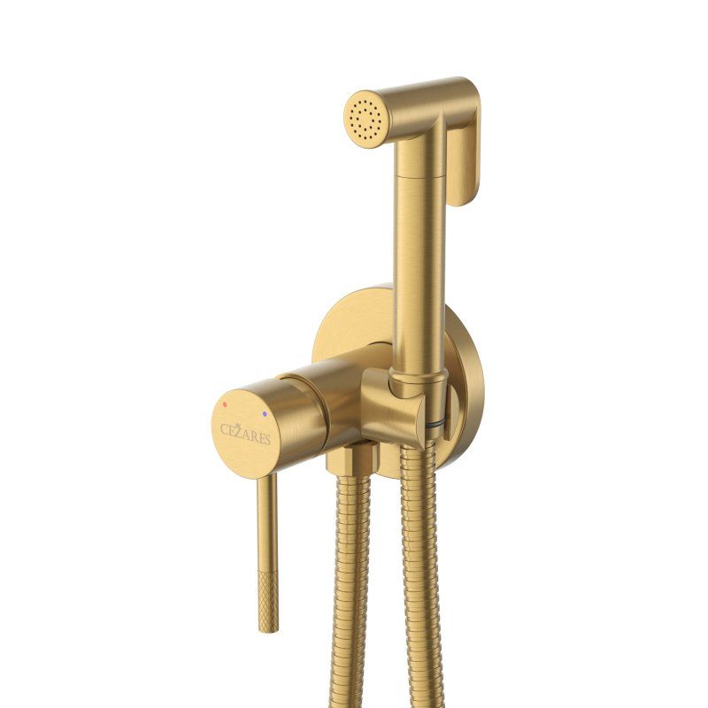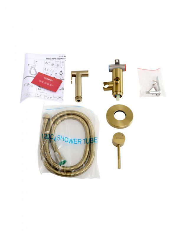 Оттенок корпуса смесителя и гигиенической лейки в цвете брашированного золота может незначительно различаться из-за использования разных материалов. Это не считается дефектом.