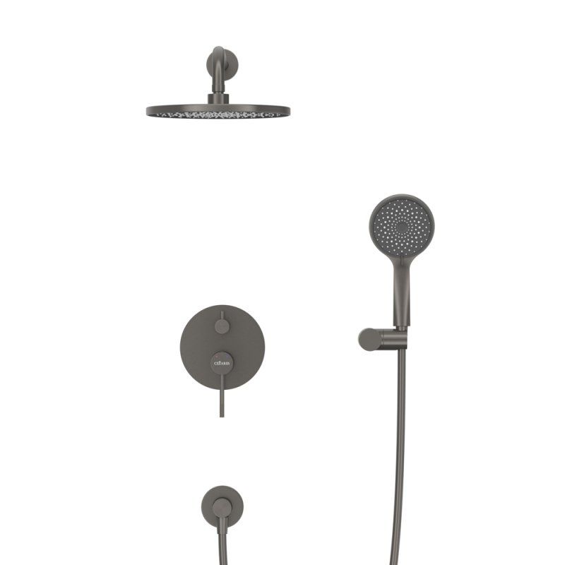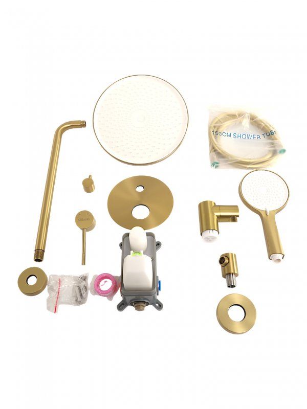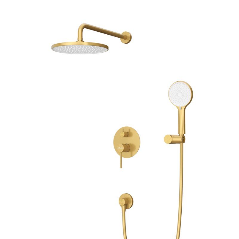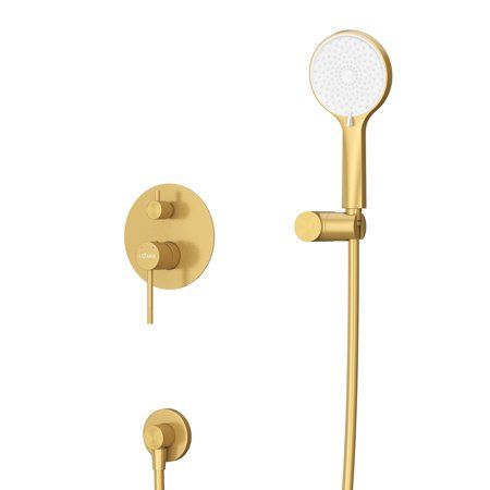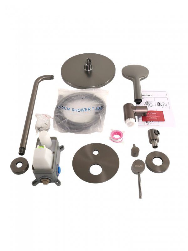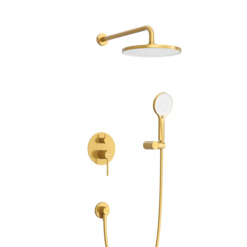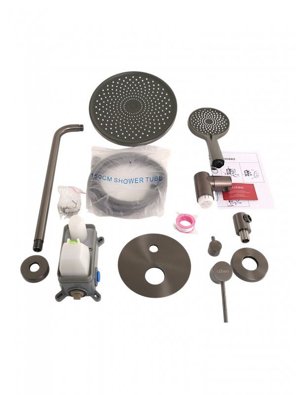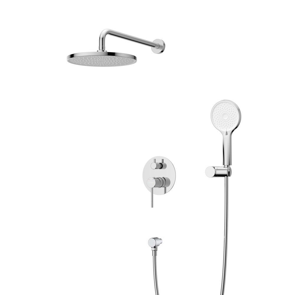 Оснащение: встраиваемый смеситель с переключателем на два выхода, верхний душ с кронштейном, ручной душ 3-х режимный со шлангом, штуцером и держателем