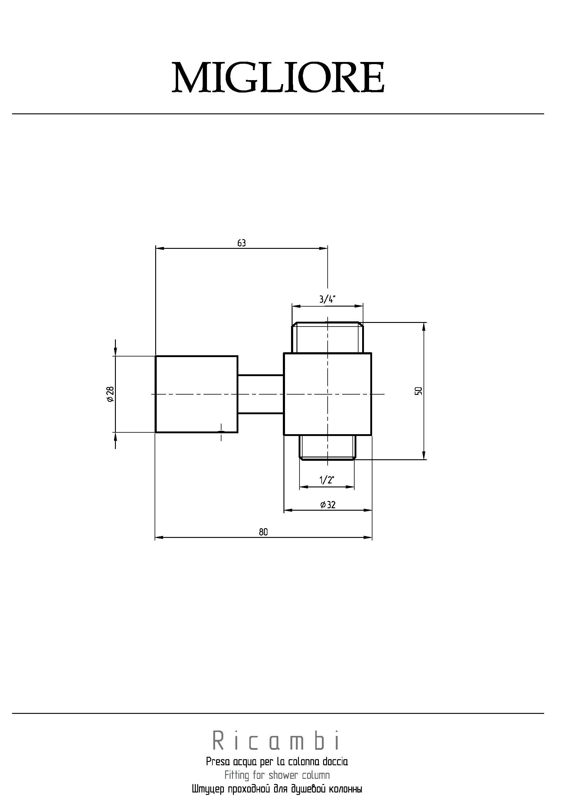 Штуцер проходной для душевой колонны.