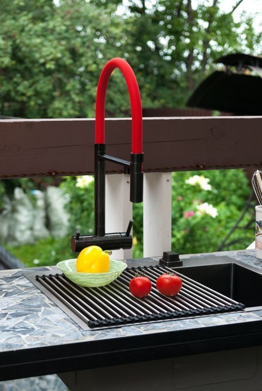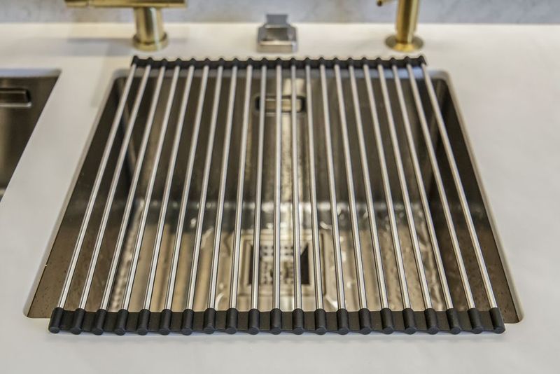 - Стильный коврик можно расположить на крыле мойки или на столешнице для размещения горячих кастрюль, сковородок и увеличения пространства для сушки.