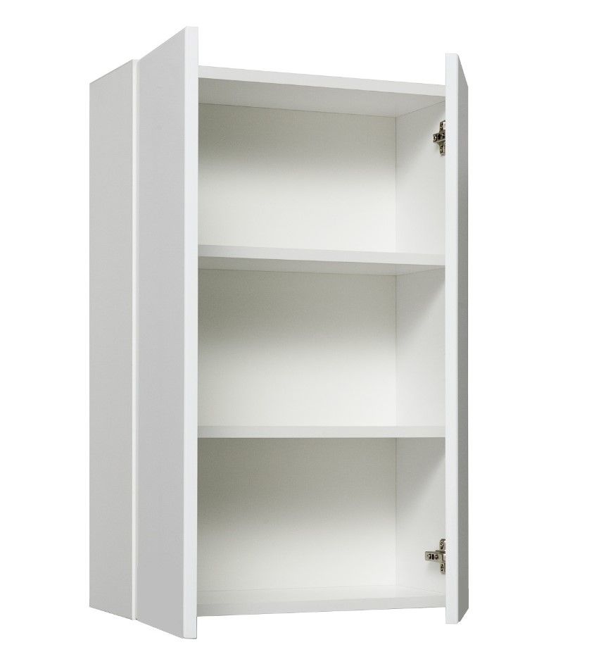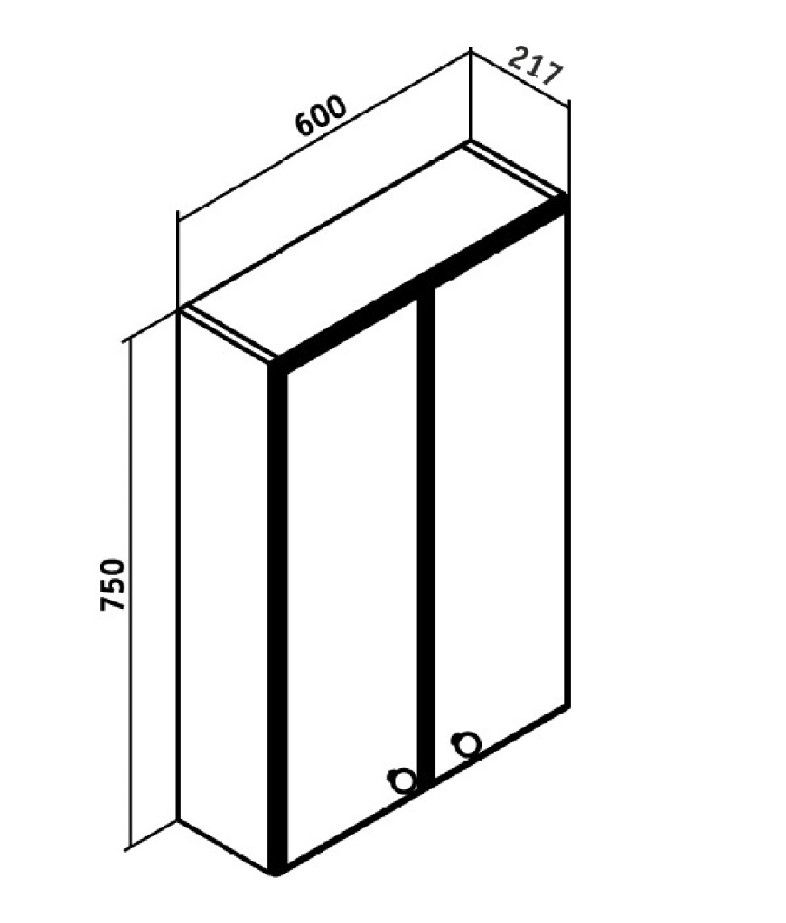 Шкаф навесной с двумя распашными дверками. Внутри - две встроенные полки. Петли со встроенным доводчиком, ручки - 2шт, навесы 2шт.
