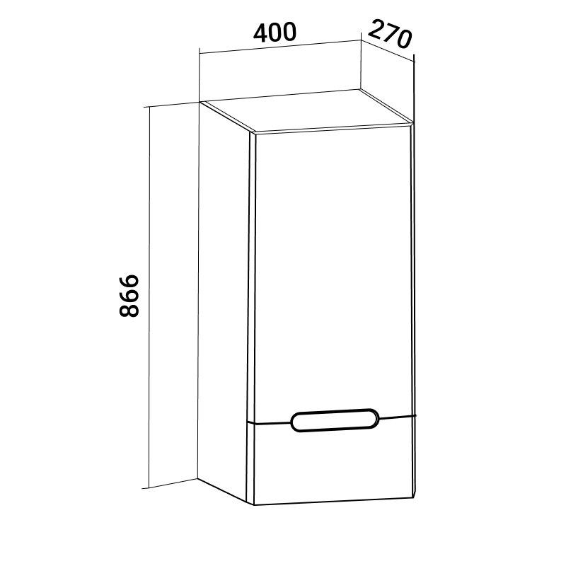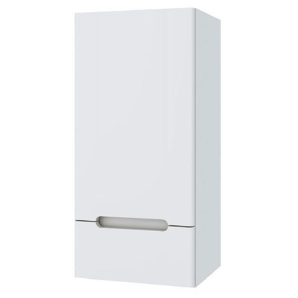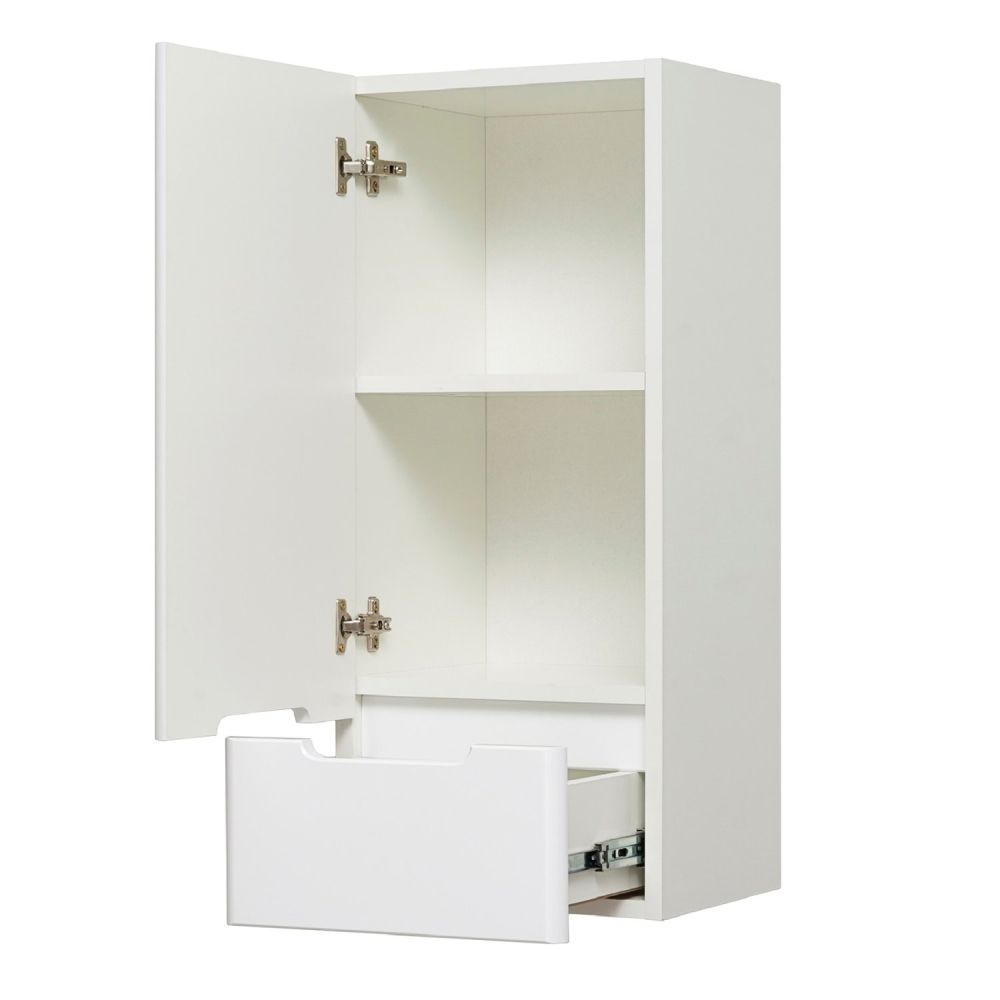 Шкаф навесной с одной дверкой и нижним выдвижным ящиком. За дверкой - одна внутренняя полка. Петли со встроенным доводчиком, ящик на шариковых направляющих полного выдвижения.