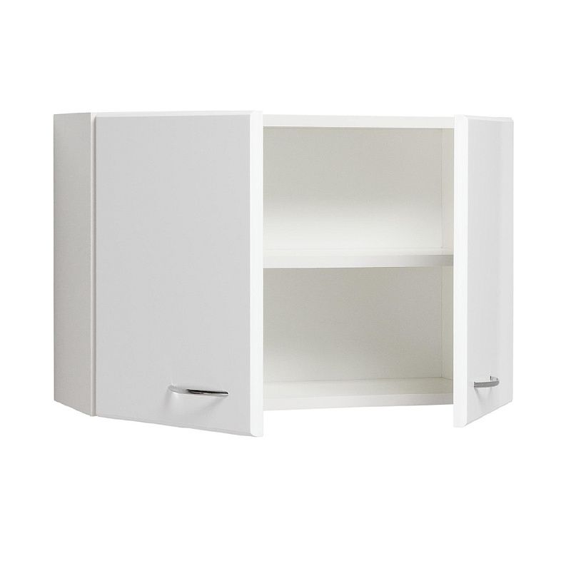 Шкаф навесной с двумя распашными дверками. Внутри - одна встроенная полка. Петли со встроенным доводчиком, ручки - 2шт, навесы 2шт.