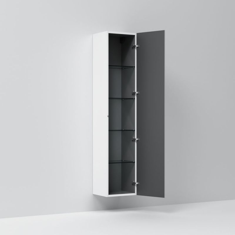 Шкаф-пенал AM PM Spirit V2.0 35 R M70ACHMR0356WG подвесной, созданный в стиле минимализма. Плиты шкафа сделаны из прочного и качественного МДФ материала, который покрыт адгезивным покрытием белого цвета. Внутри шкаф-пенал оснащен четырьмя стеклянными полками и стеклянной дверцей.
