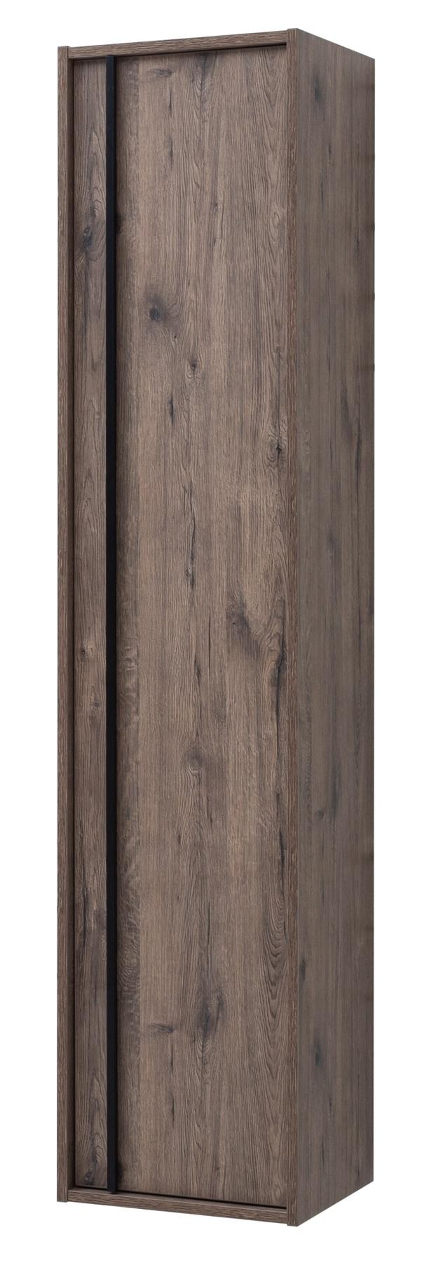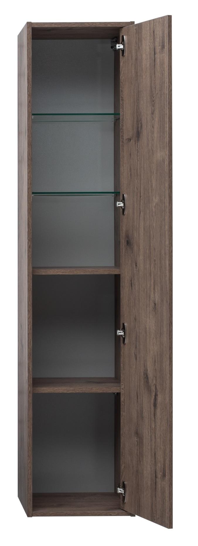 Шкаф-пенал для ванной Aquanet Lino 35 в цвете "дуб веллингтон" - яркий пример мебели в эко-стиле. Яркая, приятная глазу цветовая гамма плюс текстурная поверхность, максимально приближенная по тактильным ощущениям к натуральной древесной поверхности, является визитной карточкой коллекции.Пенал подвесной, довольно высокий - 1 метр 60 см, вмещает в себя сразу пять полочек, две из которых, самые верхние, - стеклянные. Дверца одна. Тонкая изящная ручка тянется по всей высоте шкафа-пенала.во всю ширину ящиков. Именно ручка находится в одной плоскости с боковыми стенками, фасад словно утоплен внутрь корпуса.. Выглядит стильно. К тому же, безопасно, так как нет выступающих деталей. Кстати, ручки отечественного производства. Сделаны из алюминия, чтобы исключить возможность коррозии, по заказу Aquanet специально для этой коллекции. Сверху на них нанесено эмалевое покрытие.