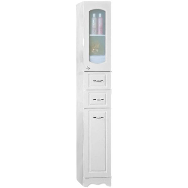 - Напольный шкаф-пенал Бриклаер Анна 32 белый глянцевый, с двумя распашными дверцами, с витражом из матового стекла, с двумя выдвижными ящиками, со съемной бельевой корзиной. Для использования в ванных комнатах с повышенной влажностью.