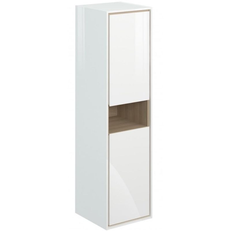 Шкаф-пенал Cersanit Louna SL-LOU/Wh подвесной оборудован стеклянными полками и открытой нишей.