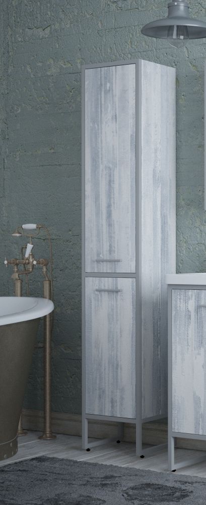 Коллекция выполнена в актуальном стиле "Лофт". Пенал закреплен на металлическом каркасе. У пенала 2 распашные двери. Позади дверей - полки.