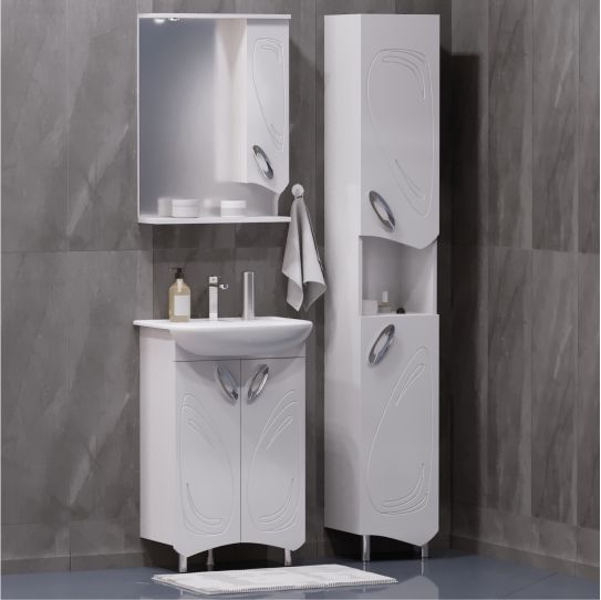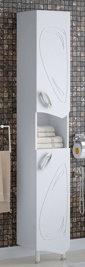 Пенал оснащён 2 распашными дверьми, между ними ниша. 4 металлические опоры.