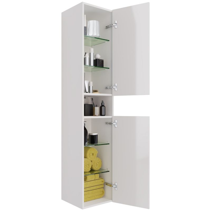 Шкаф-пенал выполнен из влагостойкого МДФ и ЛДСП.