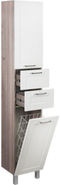 Шкаф-пенал Iddis Sena 36 SEN3600i97 с двумя ножками, с корзиной для белья. Предназначен для использования в ванных комнатах с повышенной влажностью. Влагостойкие материалы повышенной плотности. Высококачественные немецкие скрытые направляющие и петли с доводчиками плавно и бесшумно закрывают дверцы и ящики.