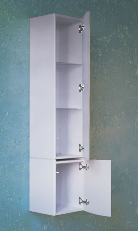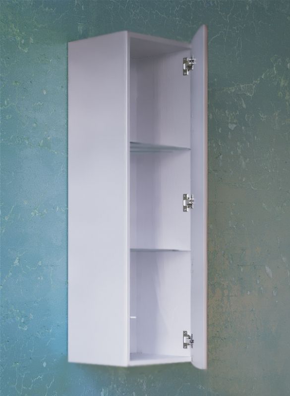 Подвесной шкаф-пенал Raval Moon 33 Moo.04.110/P/W с распашной дверцей и двумя вкладными полками. Петли дверцы оснащены доводчиками с функцией плавного закрывания. Шкаф-пенал предназначен для использования в ванных комнатах с повышенной влажностью. Влагостойкие и экологичные материалы, качественная работа фурнитуры, ударопрочность, приятные тактильные ощущения.