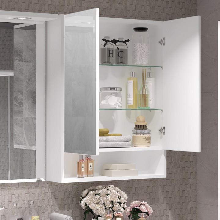 Зеркальный Шкаф Фреш 61 имеет зеркало с фацетом, дверцы с петлями плавного закрывания и полочку для аксессуаров.