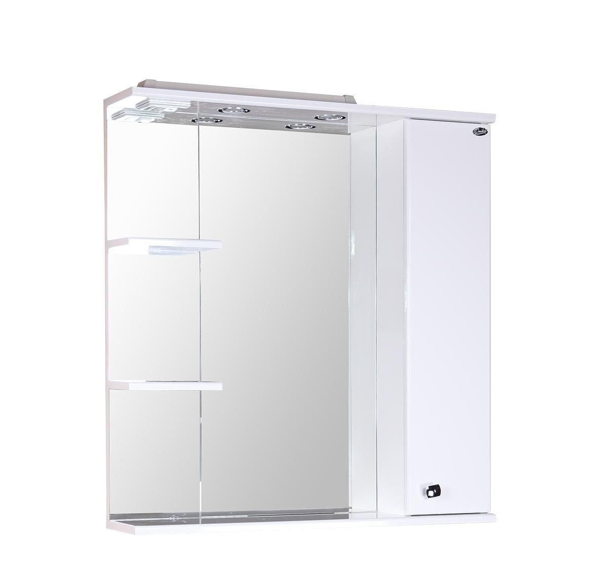 В зеркальном подвесном шкафе Onika ЭЛЬБРУС 80 белоснежный глянец фасада подчеркивается оригинальной хромированной фурнитурой и простой изысканной геометрией линий.