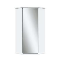 Распашная зеркальная дверца скрывает отделение для хранения, разделенное на две части горизонтальной полочкой с возможностью регулировки по высоте.