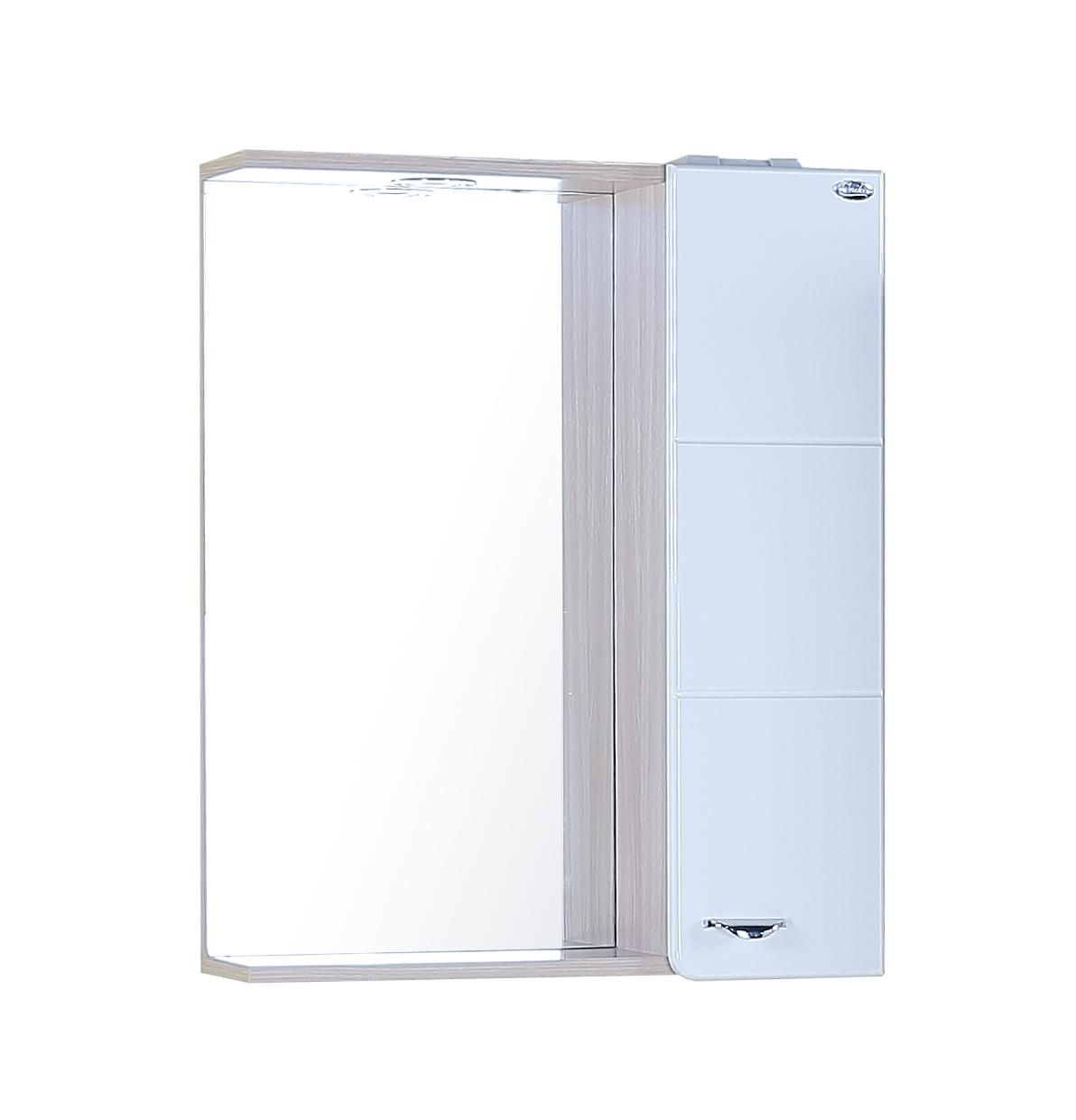 Навесной зеркальный шкаф для ванной комнаты Onika СТИЛЬ 58 гармонично сочетает контрастные цвета и фактуры: белый глянец на фоне светлого натурального дерева очень эффектно смотрится в любых интерьерах.