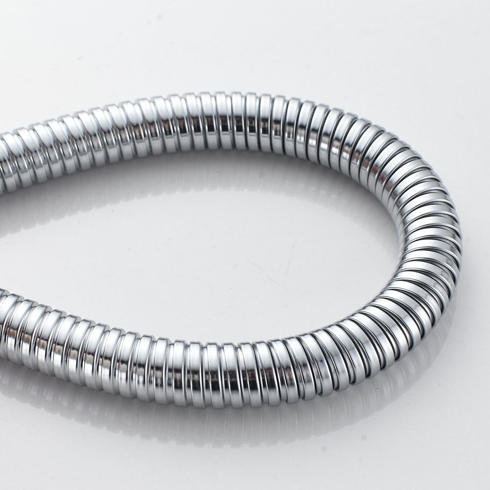 Душевой шланг Shevanik SE11-10 длиной 100 см отличается высокой прочностью и долговечностью благодаря двойной металлической оплетке. Стандарт подключения составляет 1/2", что обеспечивает совместимость с большинством душевых систем. Встроенный механизм защиты от перекручивания предотвращает повреждение шланга и обеспечивает комфортное использование.