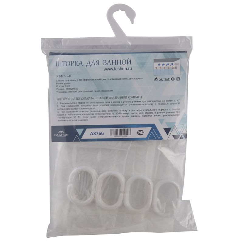 шторка для ванны с 3D эффектом и набором пластиковых колец для подвеса