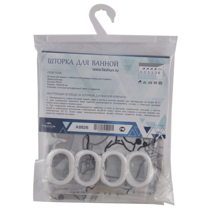 шторка для ванны с набором пластиковых колец для подвеса