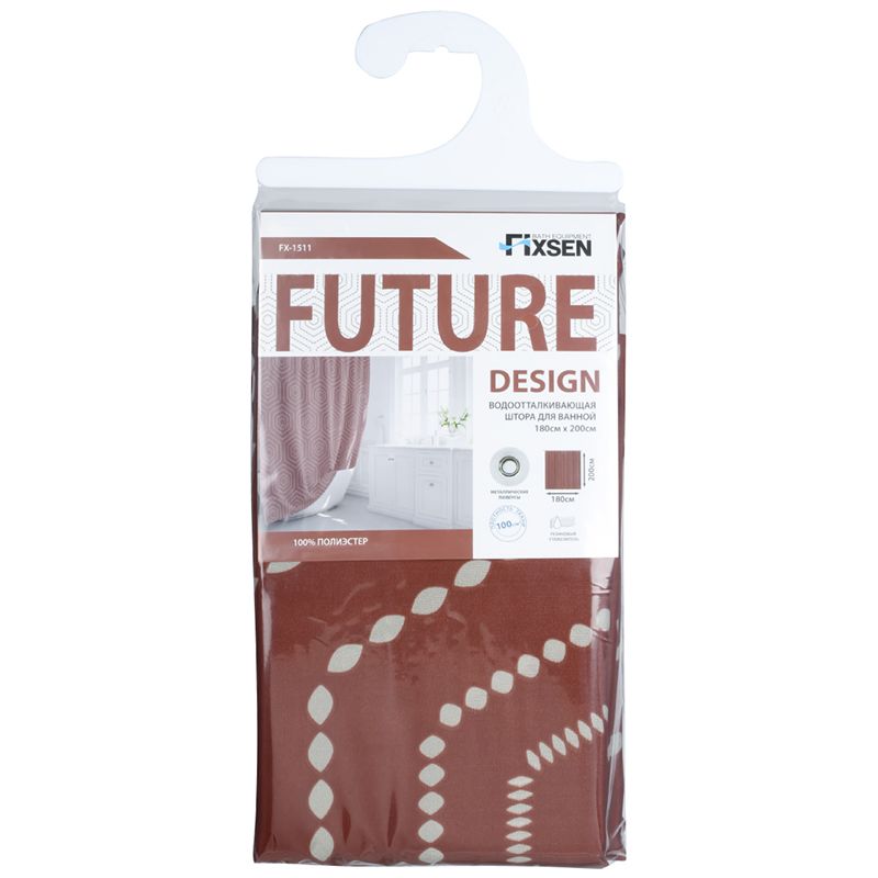 Штора для ванной комнаты FIXSEN DESIGN FX-1511, коричневый. Тип рисунка: узоры. Размер: 180*200 см.