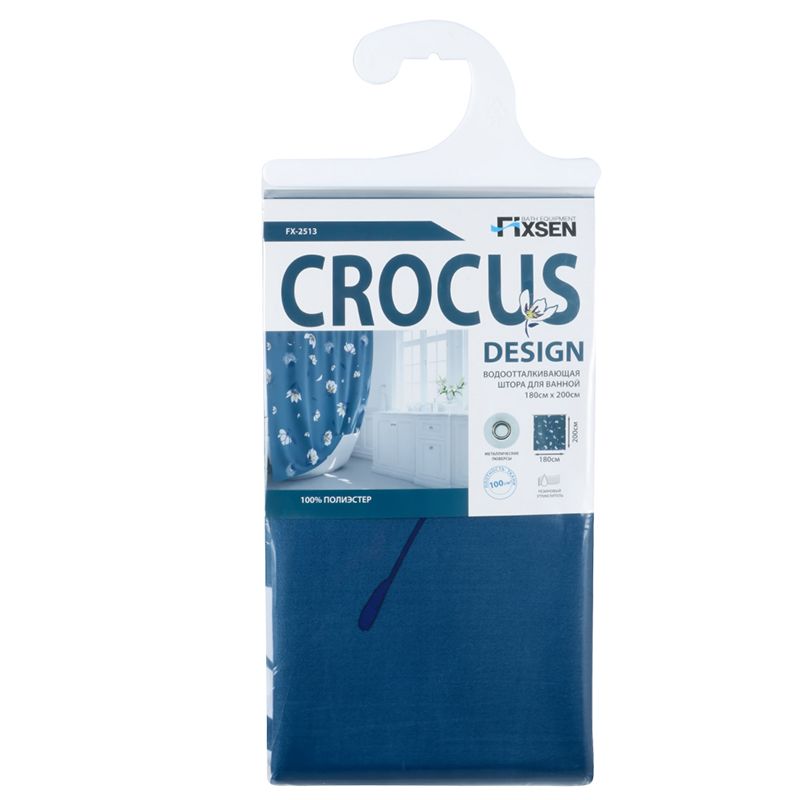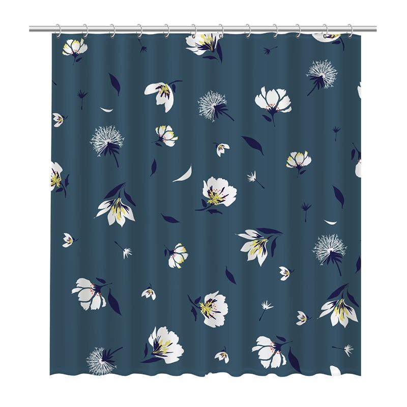 Штора для ванной комнаты FIXSEN DESIGN FX-2513, синий. Тип рисунка: цветы. Размер: 180*200 см.