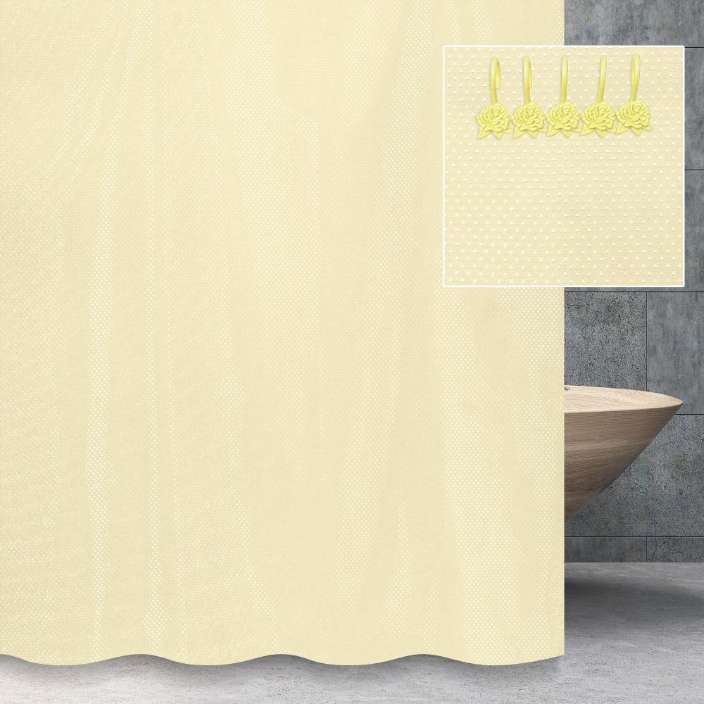 Штора для ванной комнаты Fmark FM-B20Y. В комплект входят 12 колец. Размер 200х180 см. Материал основы:полиэстер.