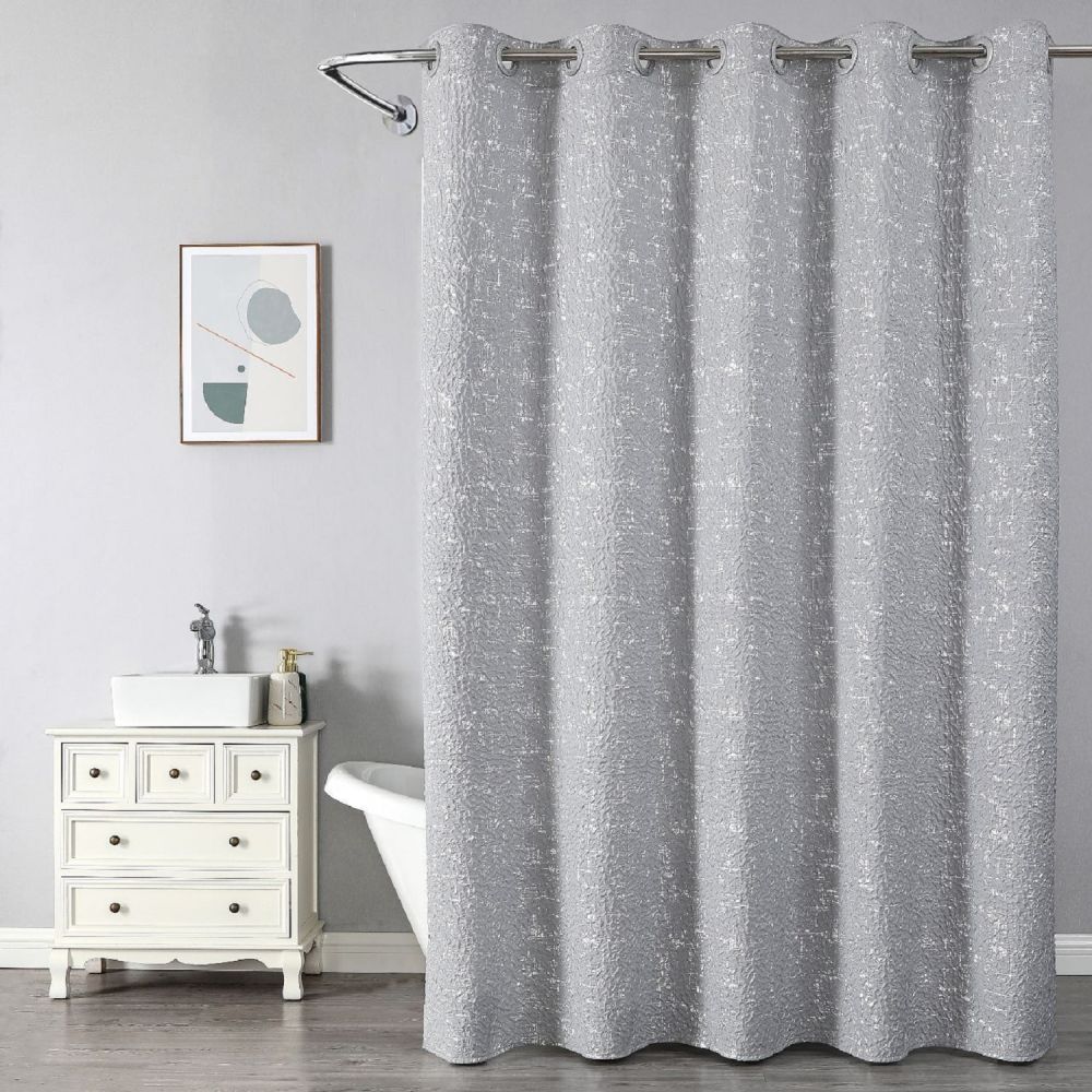 Штора для ванной комнаты Savol SK-FH1820G. Исполнена из высококачественного полиэстера - экологически чистый и приятный на ощупь материал. В комплект входят 10 колец из пластика.