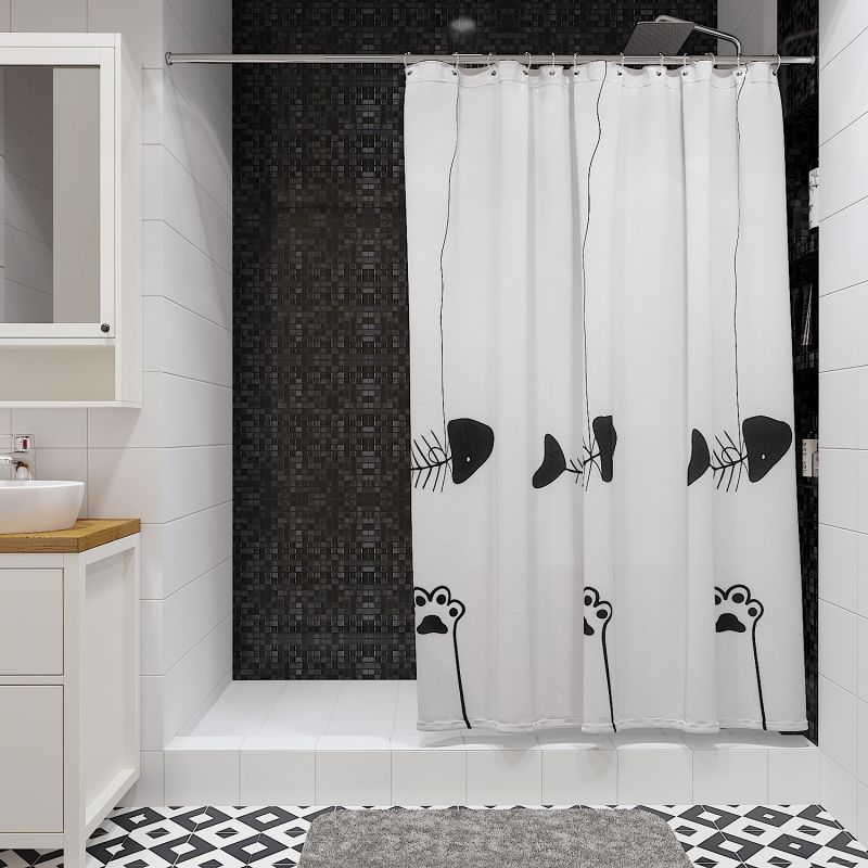 В комплекте поставки: штора для ванны, кольца - 12 штук.