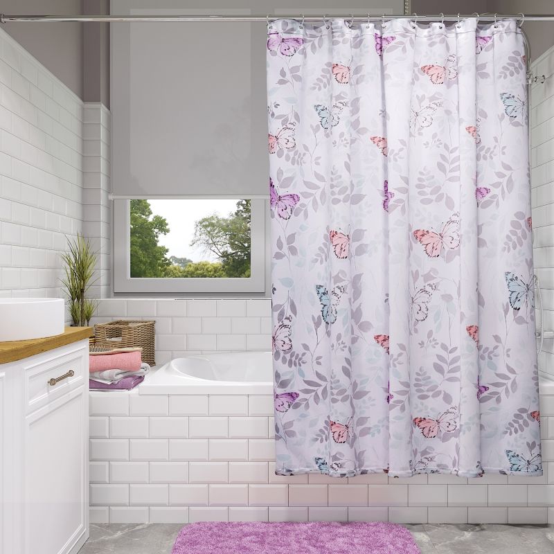 В комплекте поставки: штора для ванны, кольца - 12 штук.