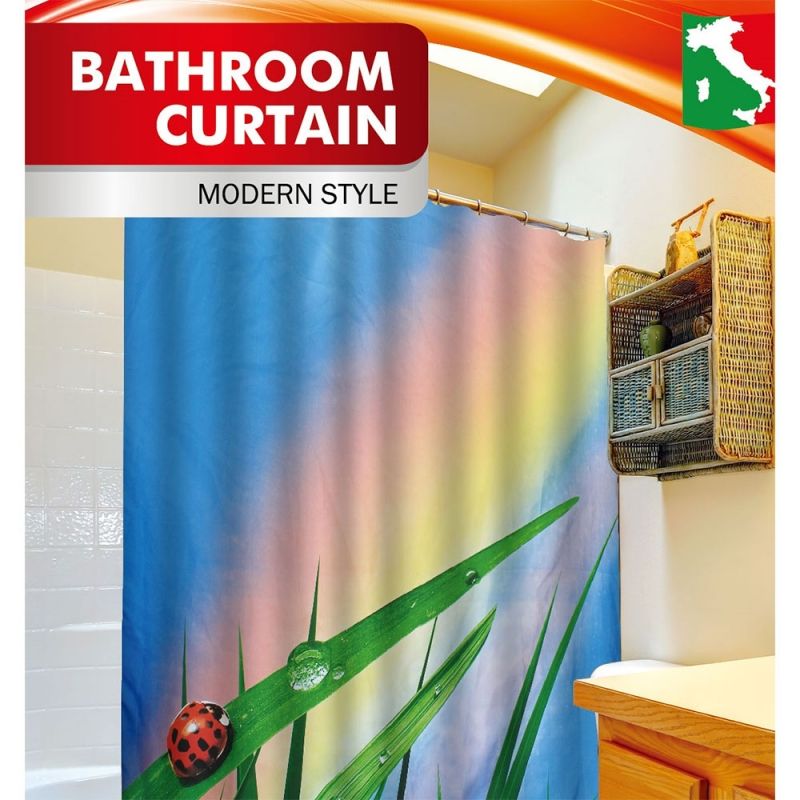 Штора для ванны Fora PH48 с изображением божья коровка - изготовлена из плотной полиэстерной ткани повышенной прочностью.