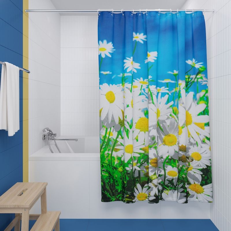 Штора для ванны Fora PH50 с изображением ромашки - изготовлена из плотной полиэстерной ткани повышенной прочностью.