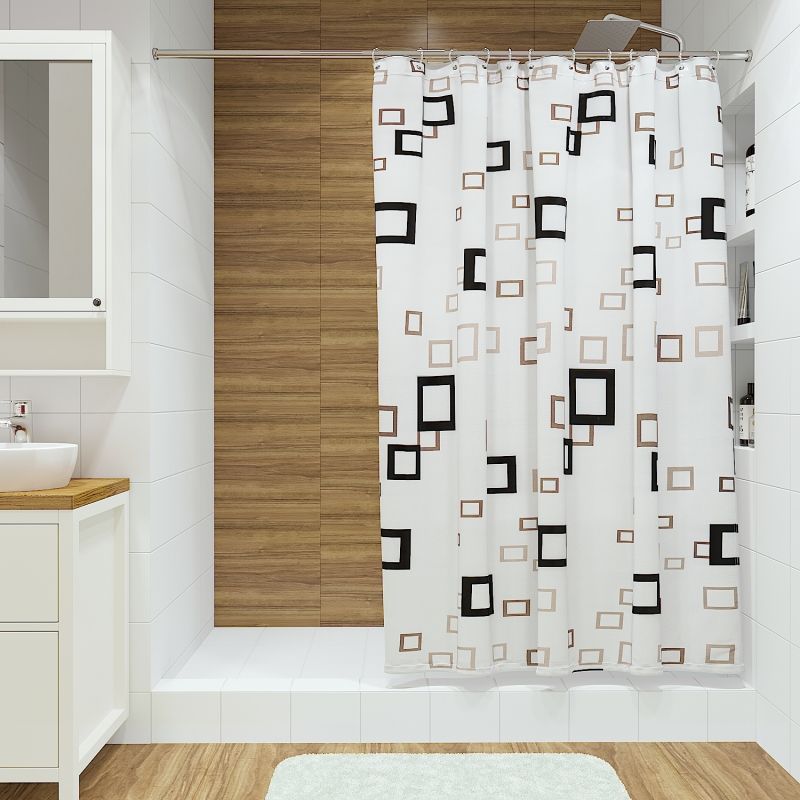 В комплекте поставки: штора для ванны, кольца - 12 штук.