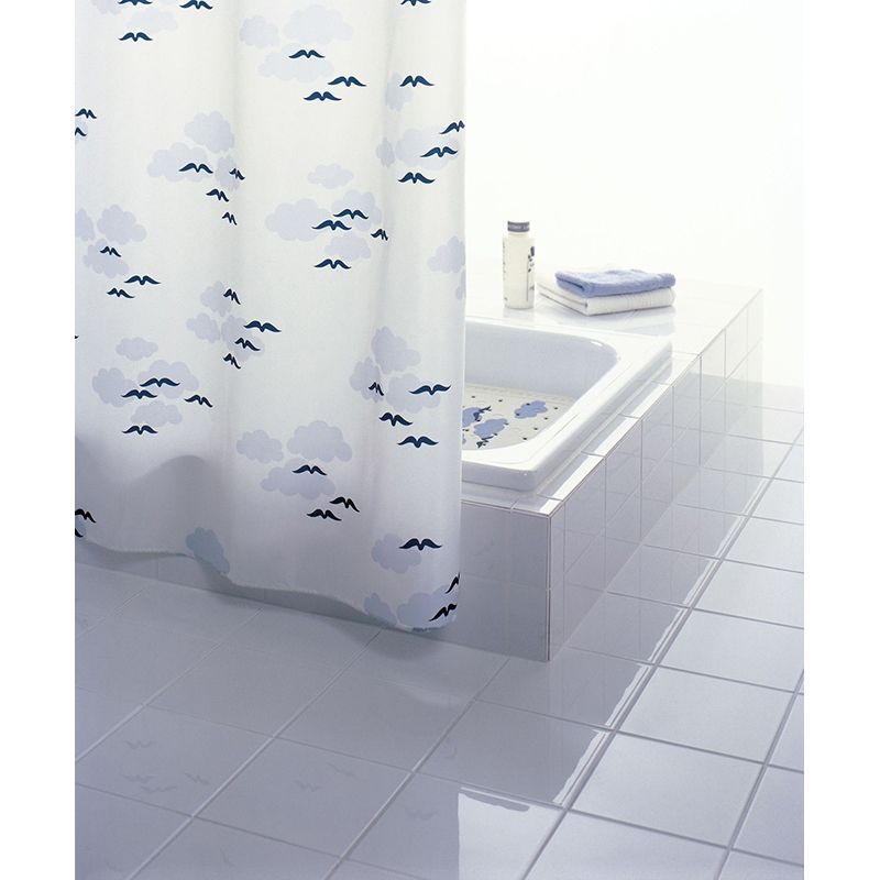 Материал: полиэстер. Мягкая и прочная ткань с водоотталкивающими свойствами. Она не мнется, не выцветает со временем и быстро сохнет после намокания. Шторка хорошо переносит стирку в стиральной машине (при температуре до 40 градусов).