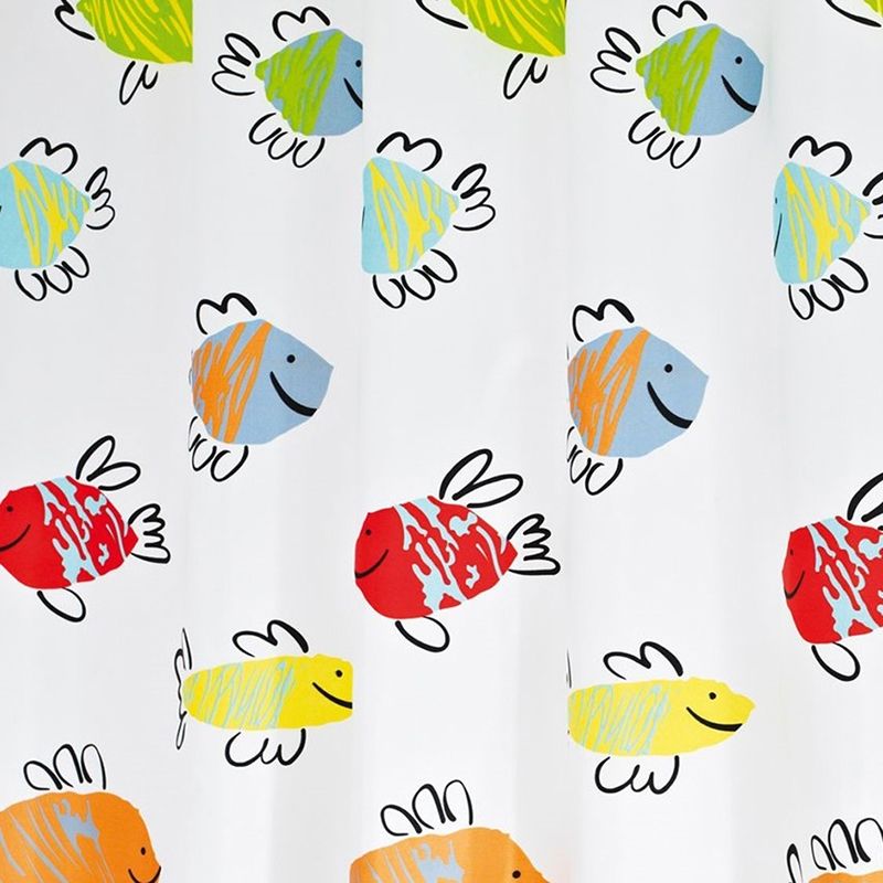 Материал: полиэстер. Мягкая и прочная ткань с водоотталкивающими свойствами. Она не мнется, не выцветает со временем и быстро сохнет после намокания. Шторка хорошо переносит стирку в стиральной машине (при температуре до 40 градусов).