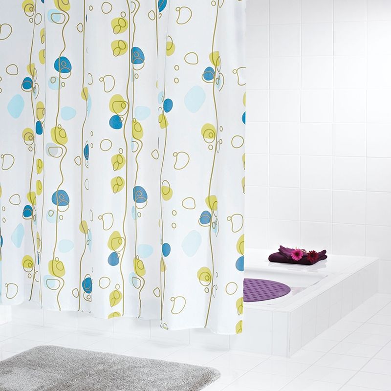 Материал: полиэстер. Мягкая и прочная ткань с водоотталкивающими свойствами. Она не мнется, не выцветает со временем и быстро сохнет после намокания. Шторка хорошо переносит стирку в стиральной машине (при температуре до 40 градусов).