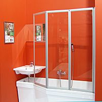 Стеклянная шторка на ванну Ravak Behappy VS3 130 795V0U00Z1 трехсекционная, состоящая из трех подвижных частей, которые складываются внутрь. Левый или правый варианты входа получаются путем разворота изделия на 180°.